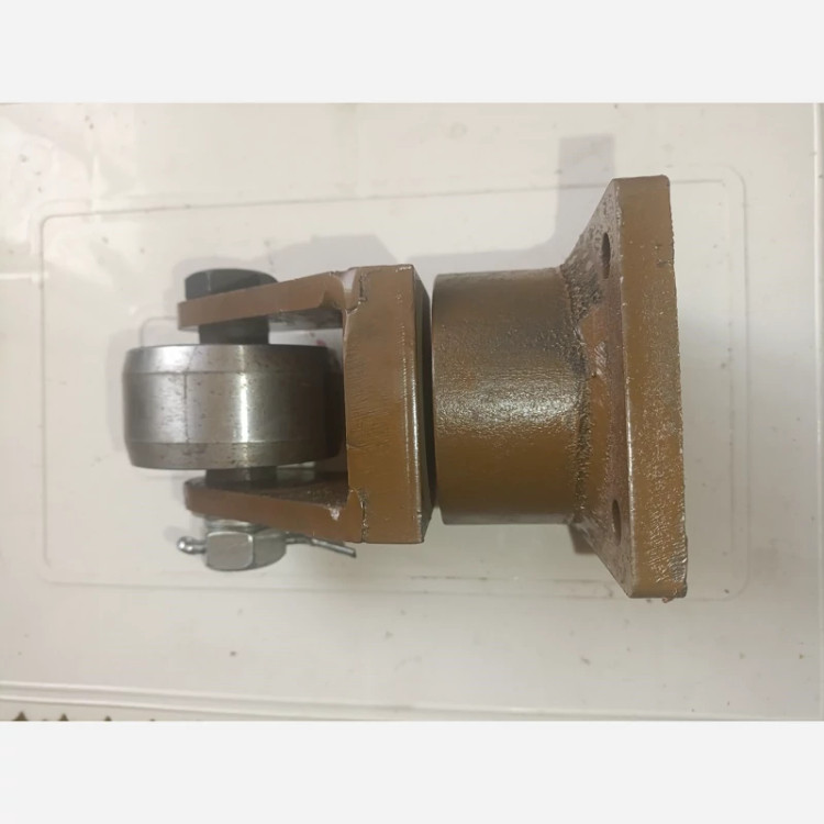 این محصول دست ساز هست دارای دوعدد رولبرینگ ودوعدد بلبرینگ قوی میباشد قطر چرخ هشت سانت باپهنای چهار سانت که بایک عدد پیچ فولادی بیست میلیمتر درجای خود محکم شده قفس چرخ باورق ده میل در طرفین وورق بیست میل در کف درست شده. قسمت گردان هم با ورق 12میل در ابعاد 95*125میلیمتر باضخامت 12میلیمتر میباشد که برروی آن یک لوله باقطر 8سانت که داخلش دوعدد رولبرینگ نصب شده . ارتفاع چرخ 17 سانت میباشد